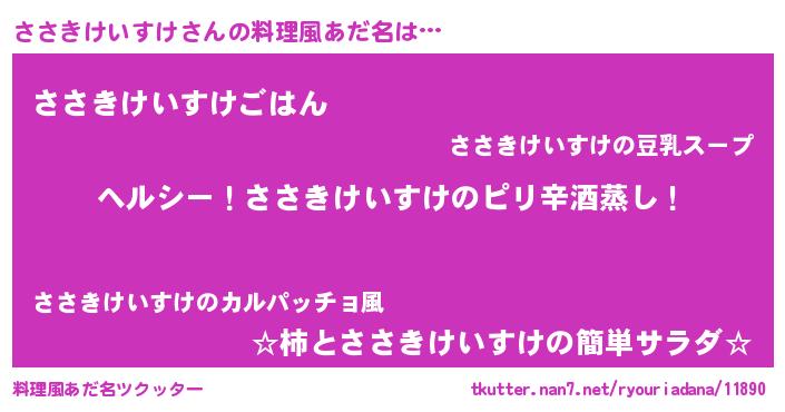 | 男性向けラノベタイトル風あだ名 | 『Re:ささきけいすけから始める異世界生活』 |