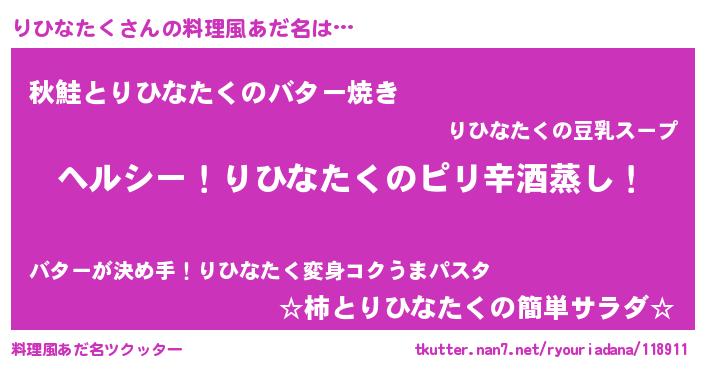 | 意味不明あだ名 | 『自称りひなたく』『永久保存りひなたく』 |