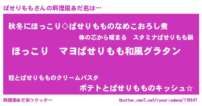 | 男性向けラノベタイトル風あだ名 | 『この素晴らしい世界にぱせりももを!』 |