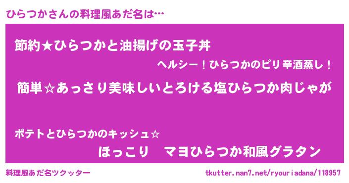 | ヘコむあだ名 | 『ひらつか(苦笑)』『ひらふぇ~』 |