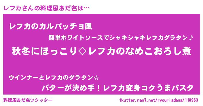 | 意味不明あだ名 | 『住所不定無職レフカ(8歳)』 |