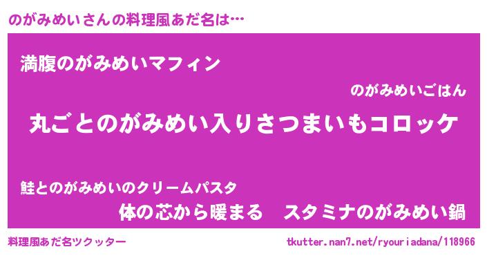 | ヒーロー風カッコイイあだ名 | 『仮面ノガダー』『ネオノガミメイ』 |