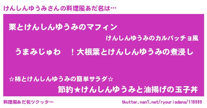 | ヘコむあだ名 | 『酢こんぶ』『けんもー』『けんっ子』 |