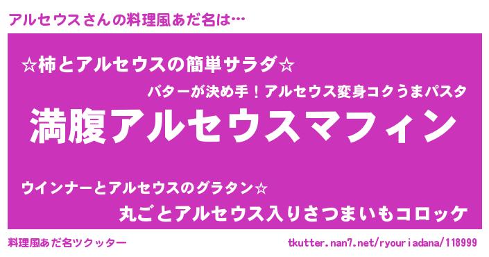 | 意味不明あだ名 | 『永久保存アルセウス』 |