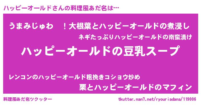 | 女子向けラノベタイトル風あだ名 | 『ハッピーオールドは平凡を望む』 |