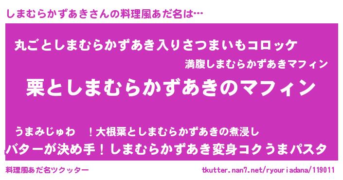 | 意味不明あだ名 | 『住所不定無職しまむらかずあき(2歳)』 |