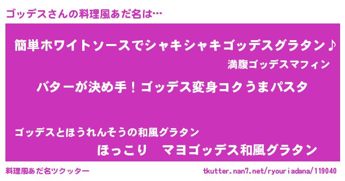 | 男性向けラノベタイトル風あだ名 | 『ノーゲーム・ノーゴッデス』 |