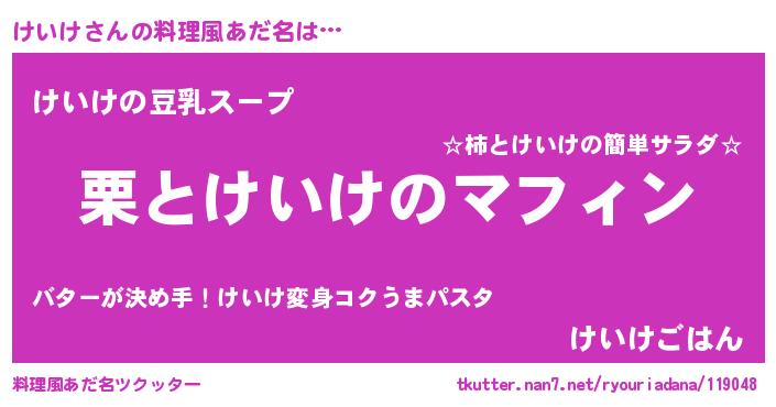 ヘコむあだ名 | 『けいっちょ』『けいけ(小並感)』 |