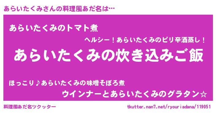 | 欧米人風あだ名 | 『あらいたくみ・ステッグマイヤー』 |