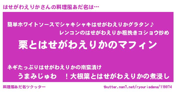 | 胡散臭い通販商品みたいなあだ名 | 『信頼と実績のサプリメント…その名も「はせがわえりか」』 |
