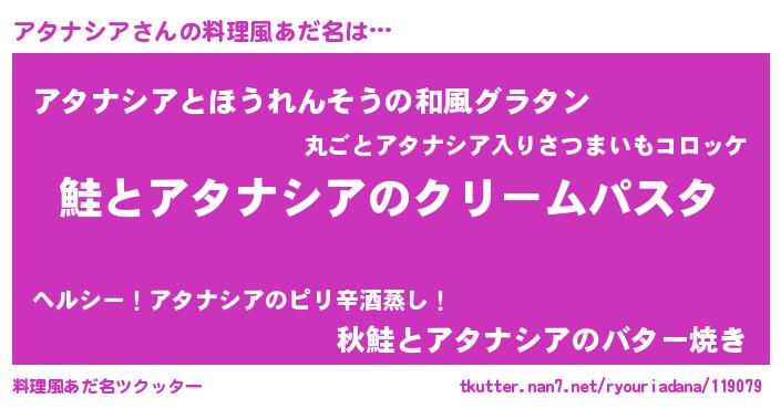 | 男性向けラノベタイトル風あだ名 | 『ノーゲーム・ノーアタナシア』 |