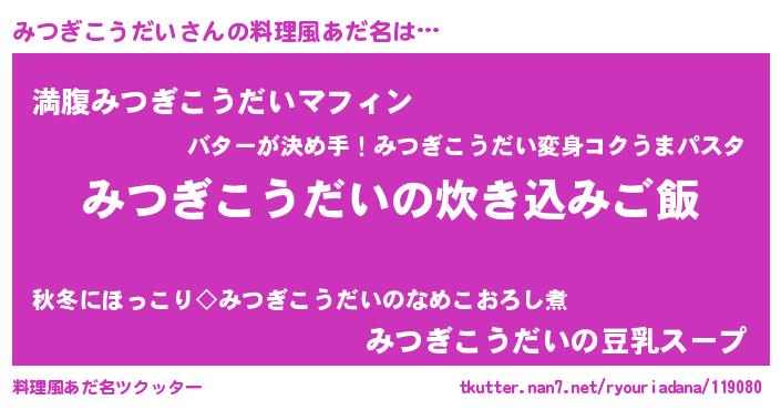 | ヘコむあだ名 | 『みつぎこうだい(小並感)』『みつぷりん』 |