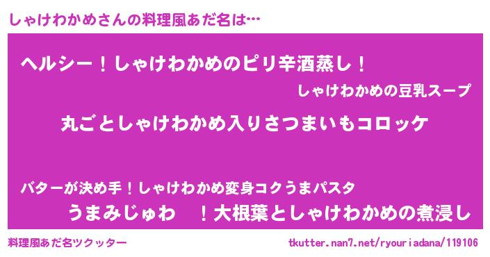| 意味不明あだ名 | 『住所不定無職しゃけわかめ(81歳)』 |