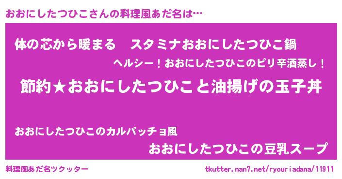 | 男性向けラノベタイトル風あだ名 | 『オオニシタツヒコアートオンライン』 |