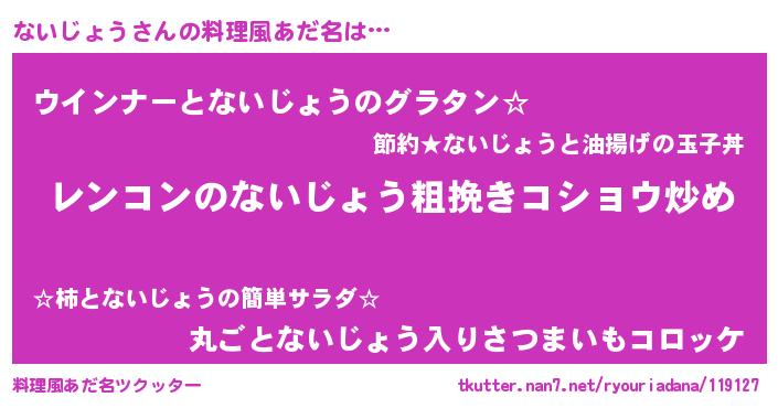 | 意味不明あだ名 | 『自称ないじょう』『ペロリンないじょう』 |