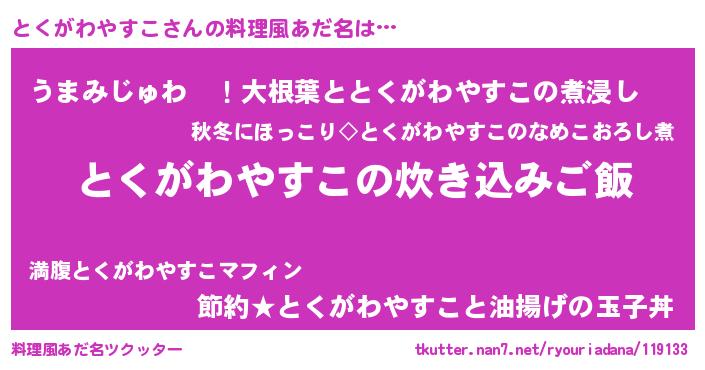 | 意味不明あだ名 | 『とくがわやすこフォーエバー』 |