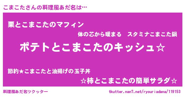 | ヘコむあだ名 | 『こまっぺ』『つくし』『こまふぇ~』 |