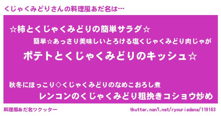 | 胡散臭い通販商品みたいなあだ名 | 『伝統あるサプリメント…その名も「くじゃくみどり」』 |