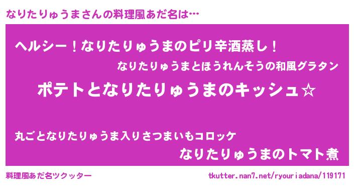 なりたりゅうまさんの料理風あだ名をツクッター!