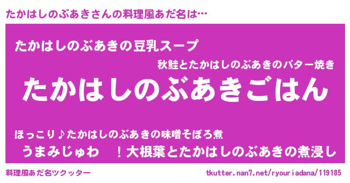 | 男性向けラノベタイトル風あだ名 | 『転生したらたかはしのぶあきだった件』 |