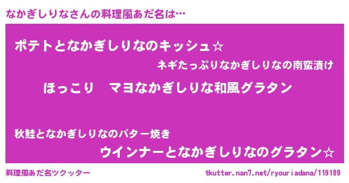 | 男性向けラノベタイトル風あだ名 | 『この素晴らしい世界になかぎしりなを!』 |