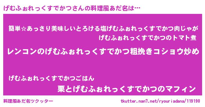 | 意味不明あだ名 | 『自称げむふぉれっくすでかつ』 |