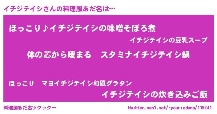 | 意味不明あだ名 | 『イチジテイシフォーエバー』 |