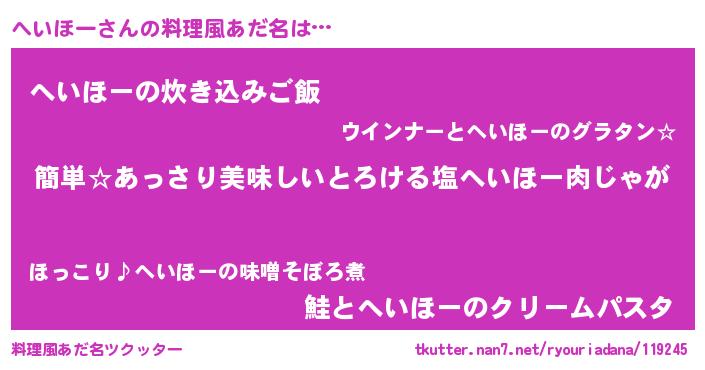 | ヘコむあだ名 | 『へいほー(笑)』『豆乳』『へいにー』 |