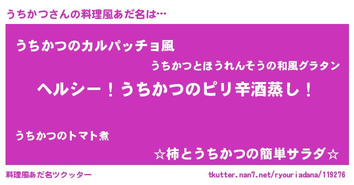 | 意味不明あだ名 | 『自称うちかつ』『ヨモギ科うちかつ属』 |