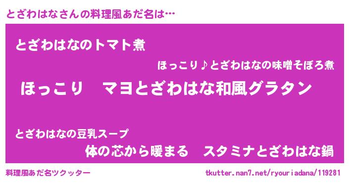 | 男性向けラノベタイトル風あだ名 | 『この素晴らしい世界にとざわはなを!』 |