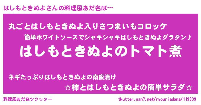 | ヒーロー風カッコイイあだ名 | 『正義の使者はしもときぬよ』 |
