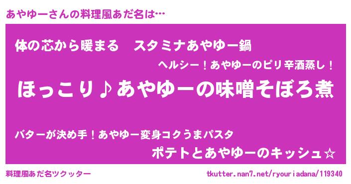 | ポケモン風あだ名 | 『アヤチュウ』『アヤユダネ』 |