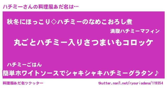 | 男性向けラノベタイトル風あだ名 | 『この素晴らしい世界にハチミーを!』 |