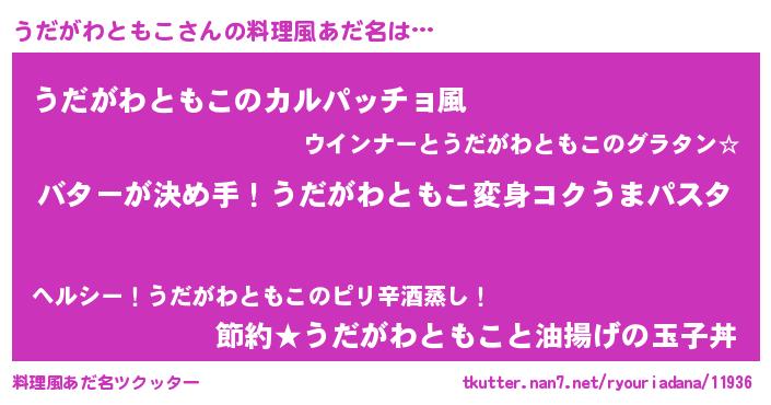 | ヘコむあだ名 | 『うだにゅー』『つくし』『うだお』 |