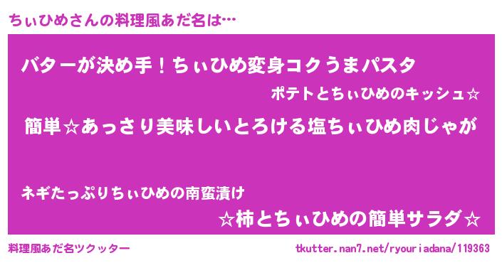 | 意味不明あだ名 | 『永久保存ちぃひめ』『ペロリンちぃひめ』 |