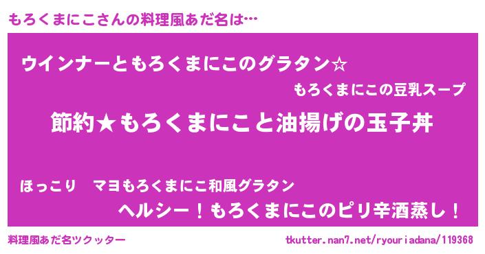 | 胡散臭い通販商品みたいなあだ名 | 『モテモテ間違いなし水晶球…その名も「もろくまにこ」』 |