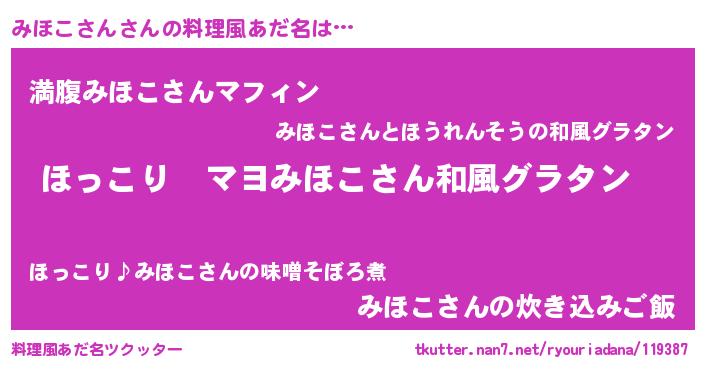 | ヘコむあだ名 | 『みほこさん(笑)』『みほにゅー』 |