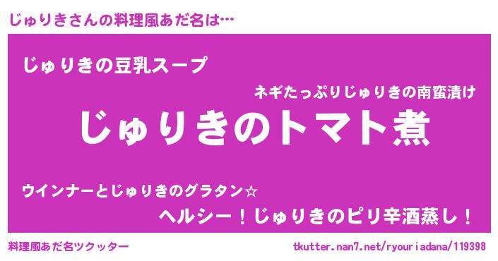 | ヘコむあだ名 | 『じゅ太郎』『じゅもー』『酢こんぶ』 |