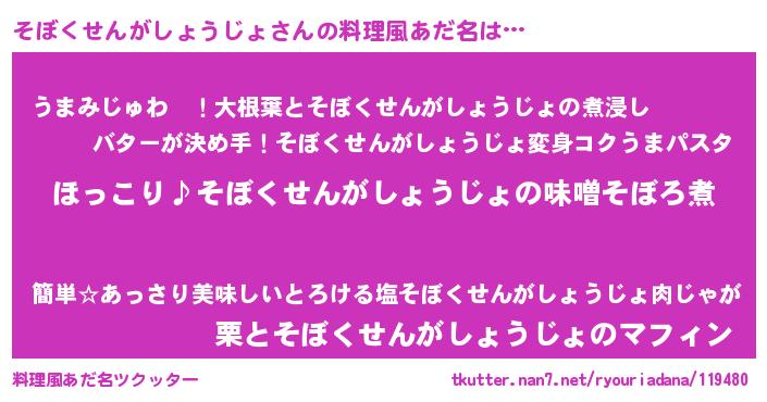 | 2回繰り返すあだ名 | 『そぼそぼ』『そそぼぼ』『ぶらぶら』 |