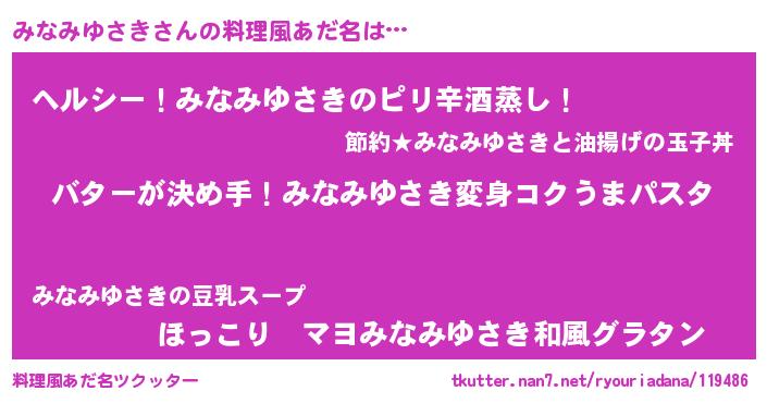 | 可愛いあだ名 | 『みなちゅっちゅ』『みなうちぇる』 |