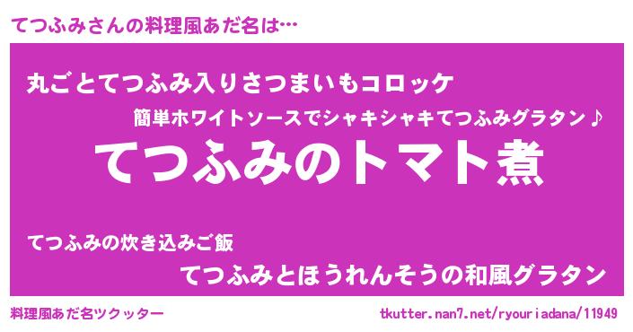 | 男性向けラノベタイトル風あだ名 | 『おまえをオタクにしてやるから、俺をてつふみにしてくれ! 』 |
