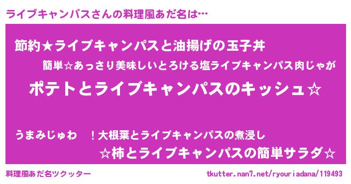 | 意味不明あだ名 | 『とにかく怪しいライブキャンパス』 |