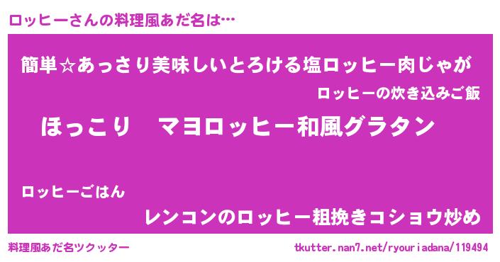 | 男性向けラノベタイトル風あだ名 | 『この素晴らしい世界にロッヒーを!』 |