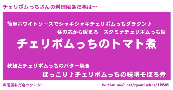 | 胡散臭い通販商品みたいなあだ名 | 『100人中100人が認めたマグネット磁石…その名も「チェリボムっち」』 |