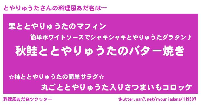 | 胡散臭い通販商品みたいなあだ名 | 『来世でも幸せになれる健康食品…その名も「とやりゅうた」』 |