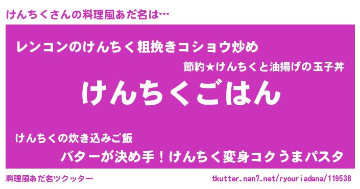 | 男性向けラノベタイトル風あだ名 | 『転生したらけんちくだった件』 |