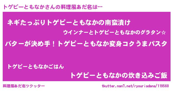 | 欧米人風あだ名 | 『ダニエルトゲピーともなか』 |