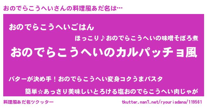 | ヘコむあだ名 | 『おのでらこうへい(笑)』『おのもー』 |
