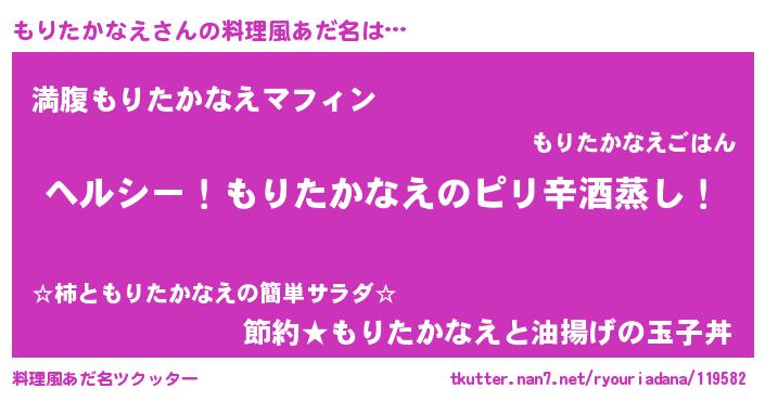 | 男性向けラノベタイトル風あだ名 | 『Re:もりたかなえから始める異世界生活』 |
