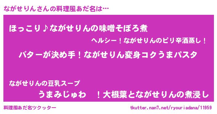 | 男性向けラノベタイトル風あだ名 | 『おまえをオタクにしてやるから、俺をながせりんにしてくれ! 』 |